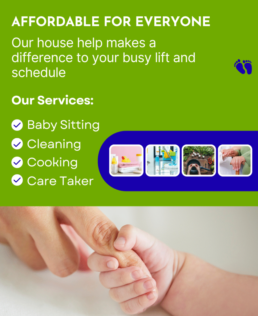 We offer verified staff for housekeeping, cooking, babysitting, elderly care, and full-time or part-time domestic help. Our goal is to make your daily life easier and stress-free.